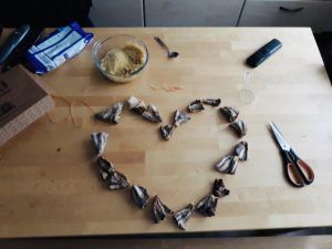 kuru patlıcanlarımızı kalp şeklinde hizaya sokalım.