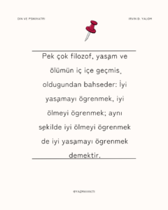 Yalom’a göre ikisinin de temel misyonu aynı: İnsanın o dindirilemez kaygısını yatıştırmak. Biri inancın tesellisiyle, diğeri zihnin analiziyle aynı ruhsal boşluğu doldurmaya çalışıyor.